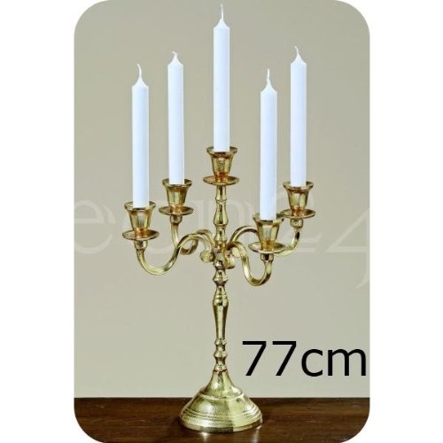 Chandelier 5 flammes Victoria doré 77 cm Le chandelier est démontable facilitant ainsi son nettoyage et son rangement . Un pied des plus stable assure une tenue parfaite de l'objet. Les receptacles à bougies ont un diamètre dŽenviron 2 cm. Caractéristiques techniques: Materiel: Aluminium Couleur: doré Dimensions 77cm(HxØ): env. 77 x 45cm Quantité: 1 unité. (Les bougies ne sont pas comprises dans la livraison)