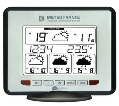 #Gardez un oeil sur le temps et sur les jours à venir avec la station météo WD9535 de La Crosse Technology. Cette station possède un écran géant de 57,5 cm de diagonale pour tenir informée toute la famille.Pouvant se positionner sur une table ou s'accrocher au mur, la station WD9535 affiche les prévisions sur 3 jours ainsi que la tendance par quart de journée : matin, après-midi, soirée et nuit.La station WD9535 affiche également les températures intérieure et extérieure.